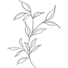 • Line drawing of a leafy branch with multiple elongated leaves.